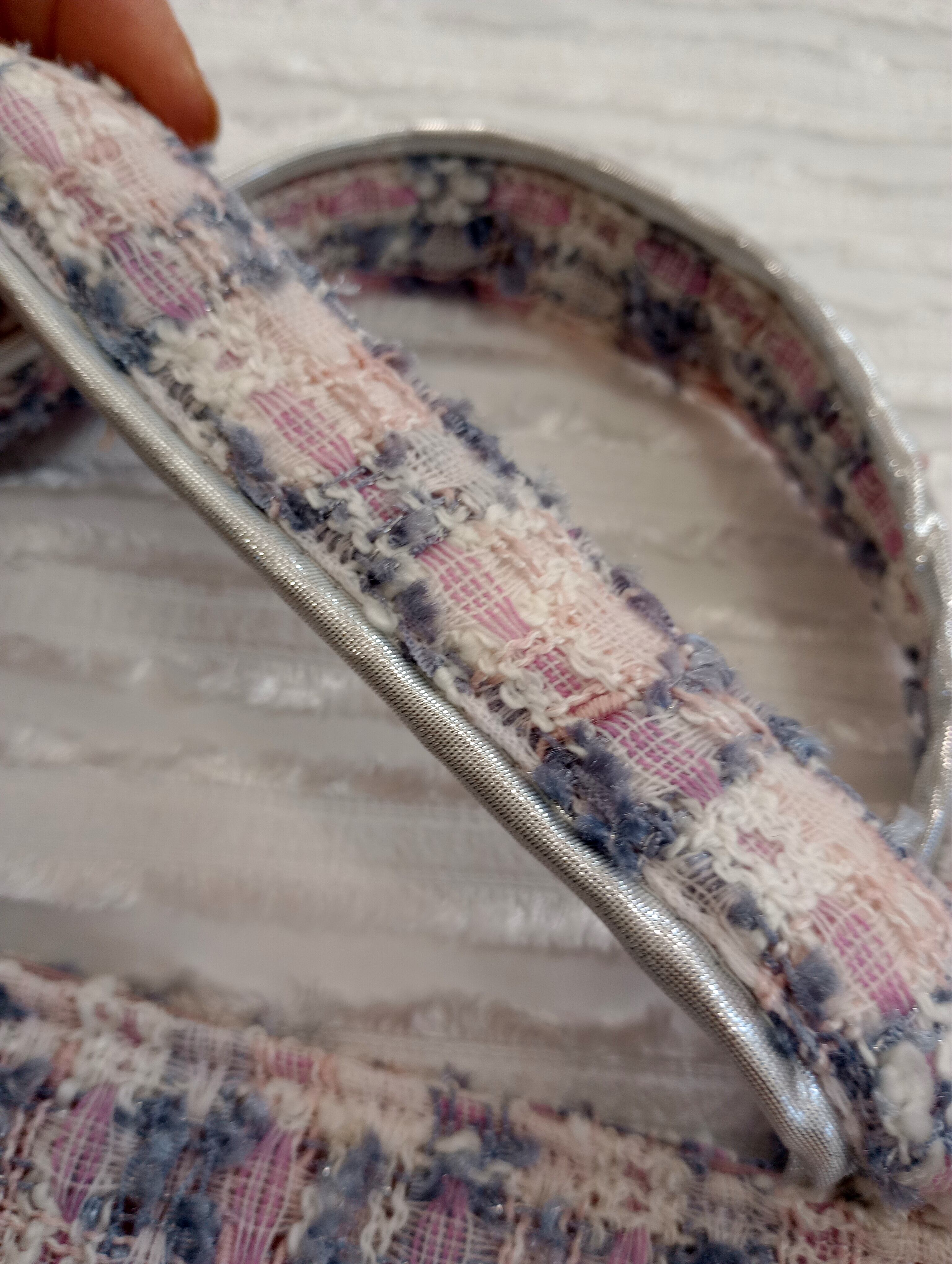 生地の中に細いシルバーラメの糸が織り込まれているとても素敵なトートに仕上がりました。